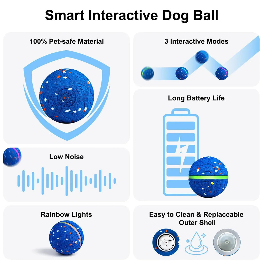 Is your dog bored while you are away? Say goodbye to separation anxiety and destroyed furniture! The Smart Interactive Dog Ball is designed to be your pet's energetic playmate, providing endless entertainment and exercise even when you're busy.