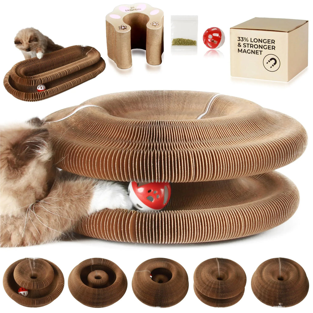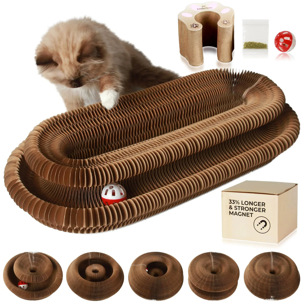 Turn Playtime into Magic: The Ultimate 3-in-1 Cat Scratcher, Lounge & Toy! Bored cats can become destructive cats. Say goodbye to shredded sofas and hello to endless entertainment with the Magic Accordion Cat Scratcher Toy. Unlike standard scratchers, this shape-shifting wonder transforms from a cozy lounge into a dynamic interactive chase toy, satisfying your cat's natural instincts to scratch, hunt, and rest—all in one durable package.