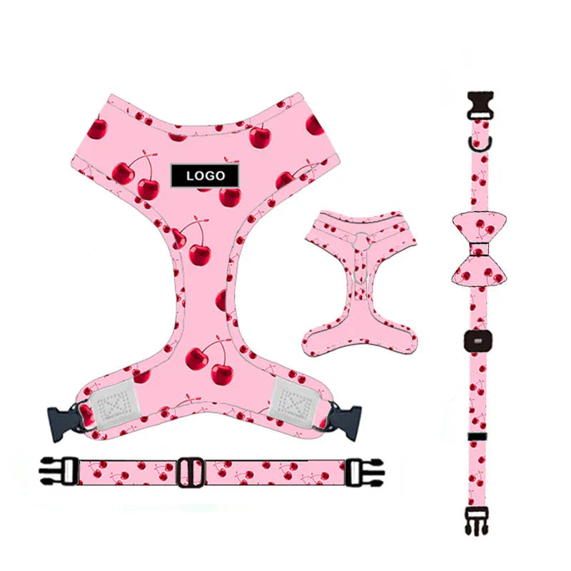 Style: A: chest strap + collar + traction rope + bowknot + dog poop bag, B: chest strap bowknot + dog poop bag, C: chest strap + collar + bowknot, D: collar + traction rope + bowknot + dog poop bag